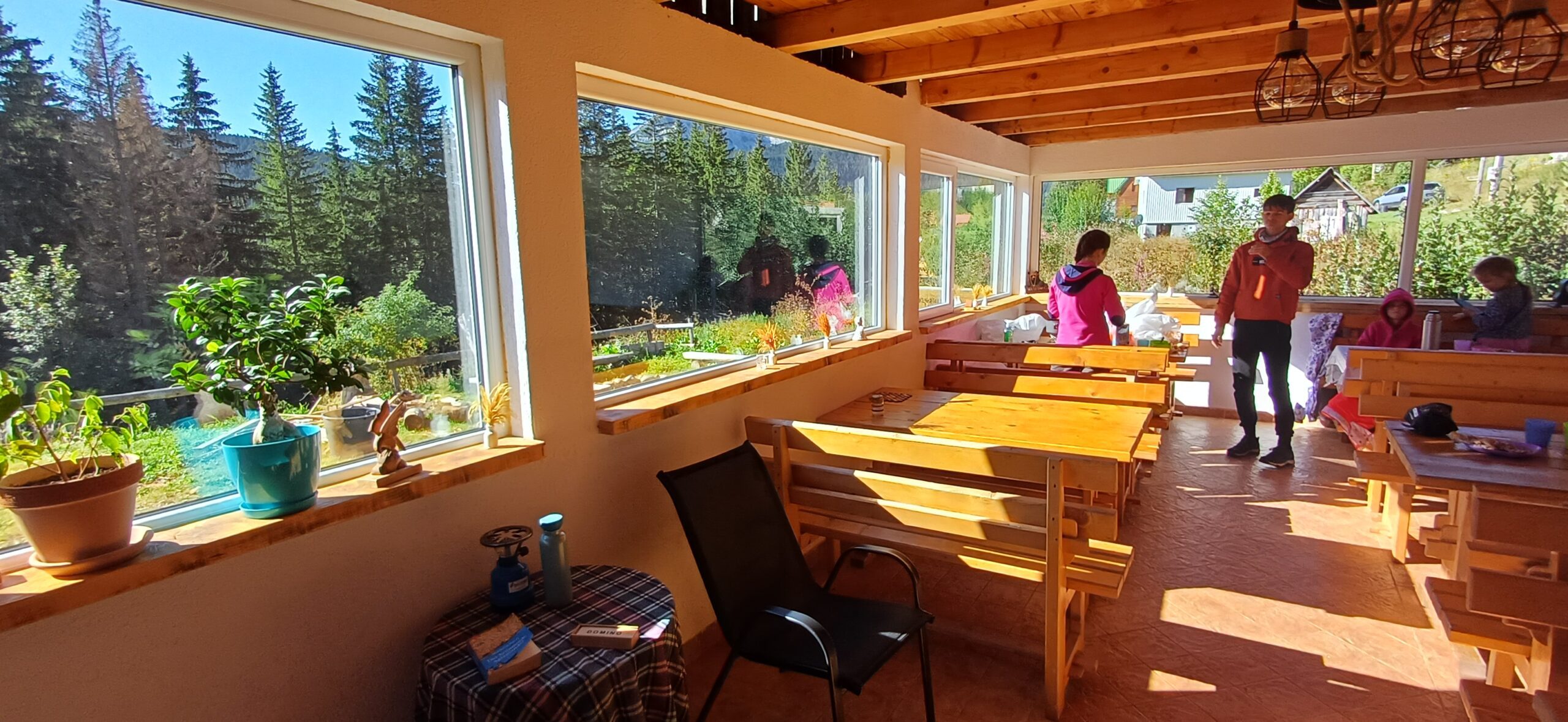 Okružen veličanstvenim planinama, kamp nudi pogled koji oduzima dah – od sniježnih vrhova i dubokih kanjona do mirnih šuma i jezera. Ambijent je uređen tako da spaja jednostavnost prirode i toplinu domaćinske kuće. Gosti se često okupljaju uz logorsku vatru ili u drvenoj kolibi, stvarajući atmosferu nalik izviđačkom kampu – prijateljsku, opuštenu i vedru.